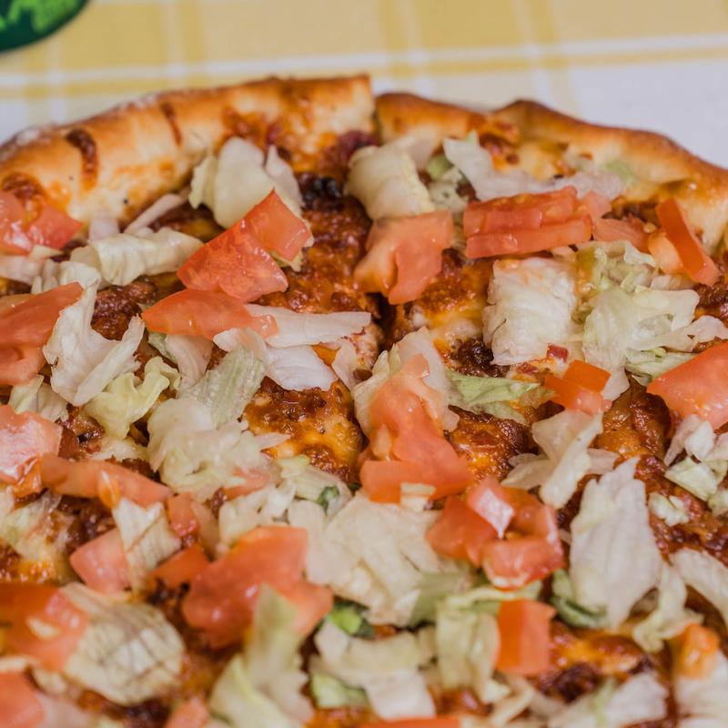 Taco Sauce, Provolone and Cheddar Cheese, Seasoned Ground Beef, Lettuce, Tomato and Sour Cream